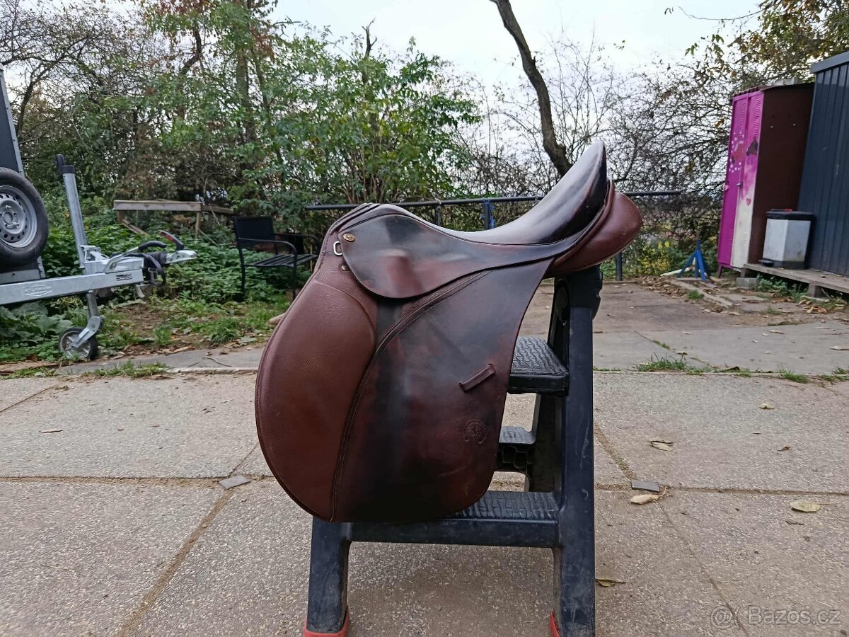 Prodám univerzální anglické sedlo na koně s výrazným kohoutkem. Rozměry viz foto.