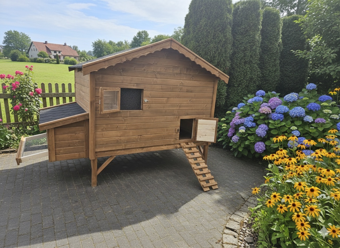 Nabízím kvalitní dřevěný kurník pro slepice o rozměrech 2,00 × 1,50 m, výška 2,00 m.