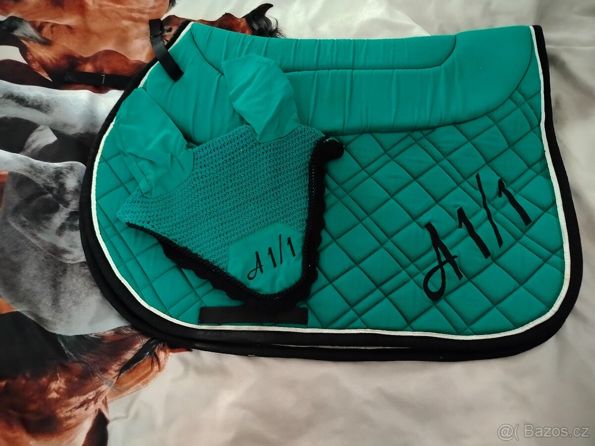 Prodám své sady na koně s výšivkou A1/1.U obou dečka použita jednou,ouška nová,u černo červené i odpocka, také použitá jednou.Cena za černo červenou 1800,za zelenou 1000.Velikost zelené cob, černo červené Full,odpocka 145