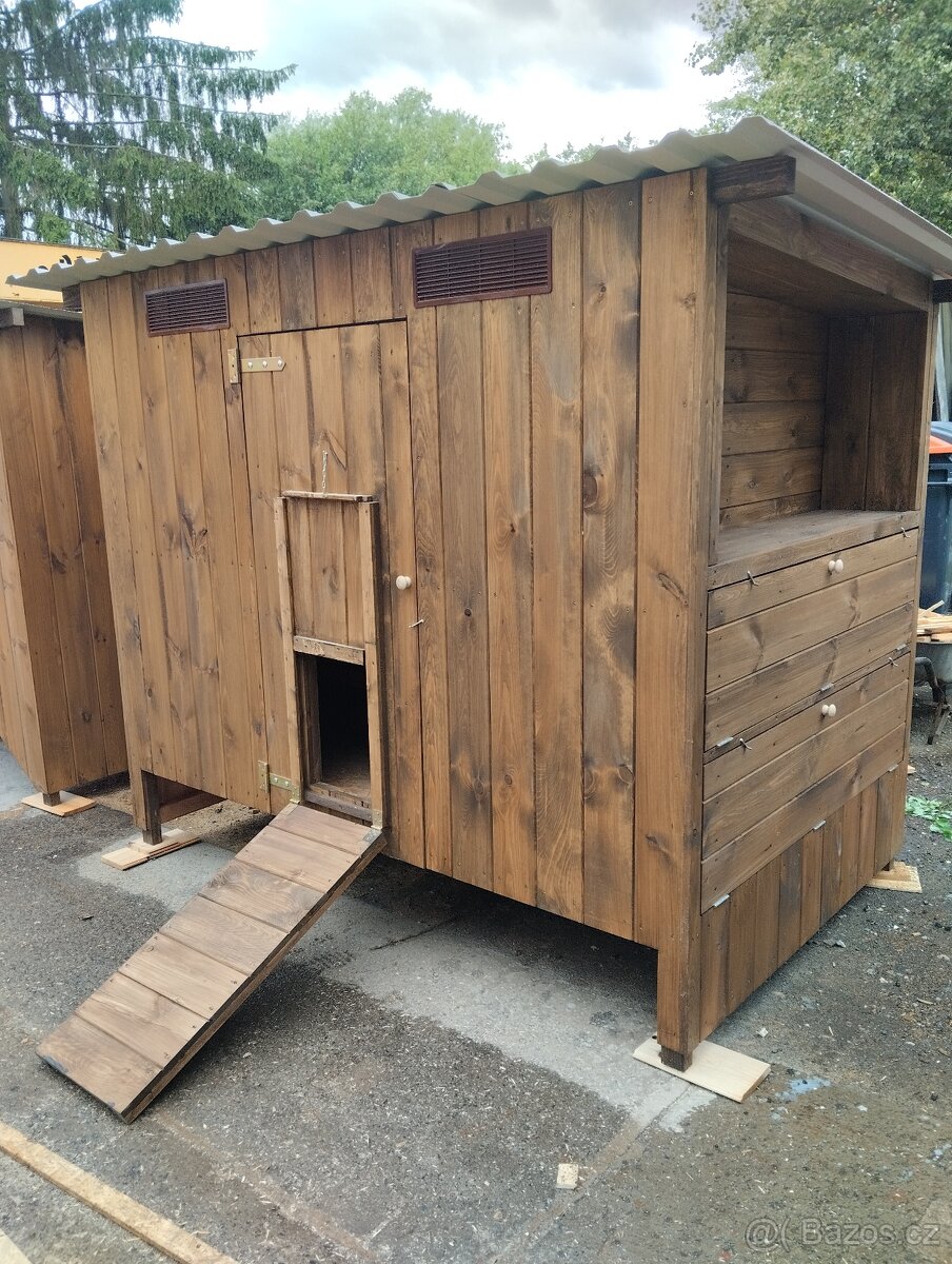 Kurník je zevnitř ošetřen nátěrem proti houbám a dřevokaznému hmyzu, zvenku je natřen kvalitní olejovou lazurou.