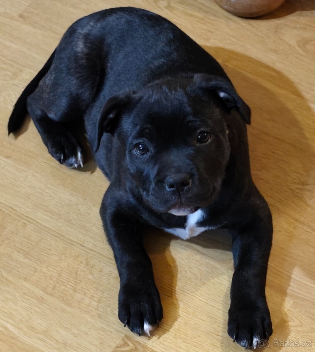 Hledám nového majitele pro našeho pejska. Má tři měsíce. Rasa Stafordšírský bulteriér. Velký mazel. Čistokrevný bez papíru. Čipovaný, očkovaný a odčervený.