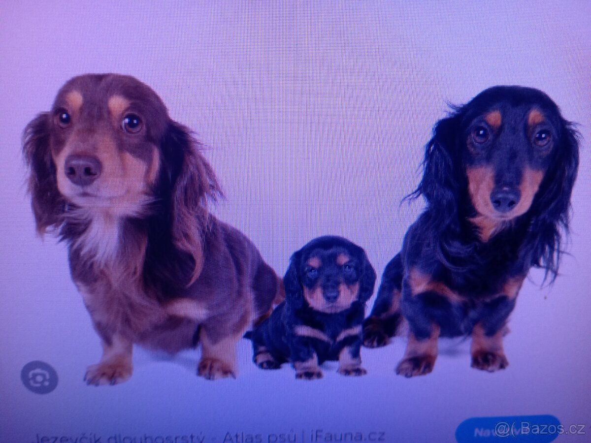 Dobrý den koupim štěně dlouhosrstého jezevčíka,fenku, trpasličího,kraličí,kremove barvy,čokoladova,čoko merle,piebald, Děkuji za nabídky.