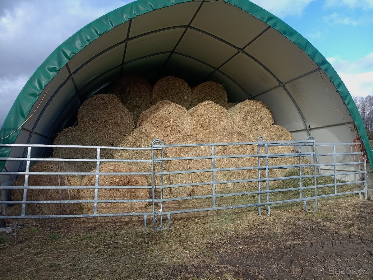 Prodám uskladněné loňské balíky sena po domluvě do 20km doprava možná k odběru 100kusů nebo i jednotlivě