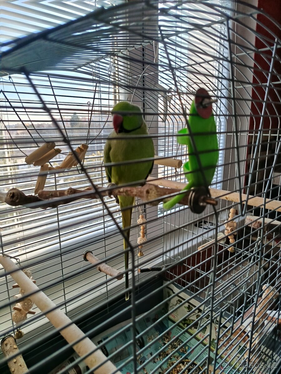 Prodám 3,5 roku starého papouška samečka Alexandra malého zeleného za 1000,- Kč i s klecí a vybavením