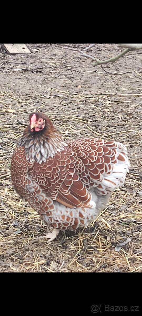 Prodám slepičky a kohoutka wyandotky zdrobnělé zlaté modře lemované. 4+1 - cena za vše 1700 Kč. Loňská kuřata - duben 2026.
