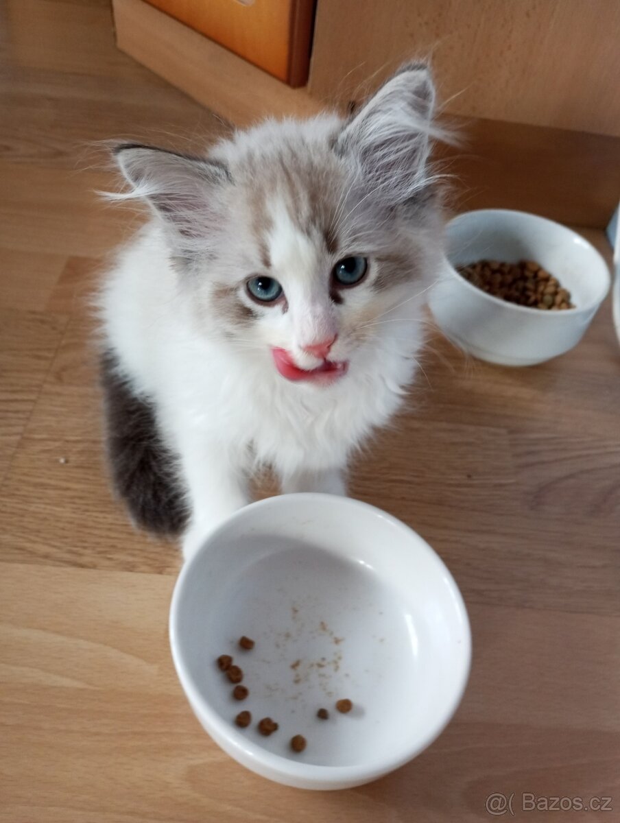 Nabízíme krásná sibiřská koťátka bez PP (matka něvská maškaráda s PP), stáří 14 týdnů, již zcela samostatná. K dispozici je již jen kocourek, čistotný a velmi mazlivý, je pravidelně odčervený, bude třeba 1. vakcinace. Odběr možný ihned, pro bližší informace volejte, na sms nereaguji!