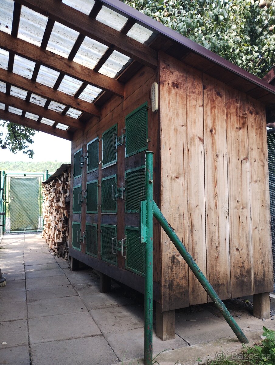 Velmi pěkná kralikarna, 12 kotců vhodné i pro chov drůbeže. Použitá po chovu králíků. Střecha plechová s okapničkou v kombinaci s nadstavbou pro průchozí část se zastřešením s polykarbonatu. Základní rozměr šíře 271cm X hloubka 110 cm. Výška v místě kde jsou záda 195cm a výška v nejvyšším bodě 250 cm. Nadstavbová část kde je polykarbonát pro průchozí 145 cm. Dvířka kotců rozměry viz foto. Nadstavbová část kde je polykarbonát lze odstranit. Vnitřní šíře kotce cca 60-65 cm A hloubka 110 cm Materiál použitý pro stavbu hranoly, smrkové desky, oplechování strechy, PVC a kování včetně kovových dvířek. Platí do smazání. Naložení a transport vlastní. Platí do smazání. Po předchozí dohodě na vaše náklady zajistím naložení hydraulickou rukou nebo jeřábem. Je to velmi těžké pro naložení svépomocí.