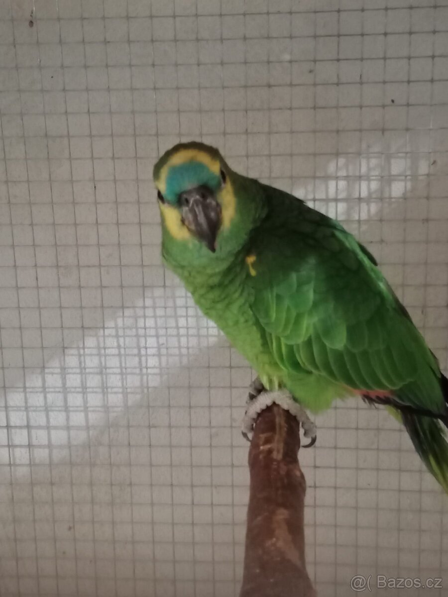 Amazoňan modročelý - [4.2. 2026]Prodám samečka Amazoňana modročelého. Narozen květen 2023. Ručně dokrmený.