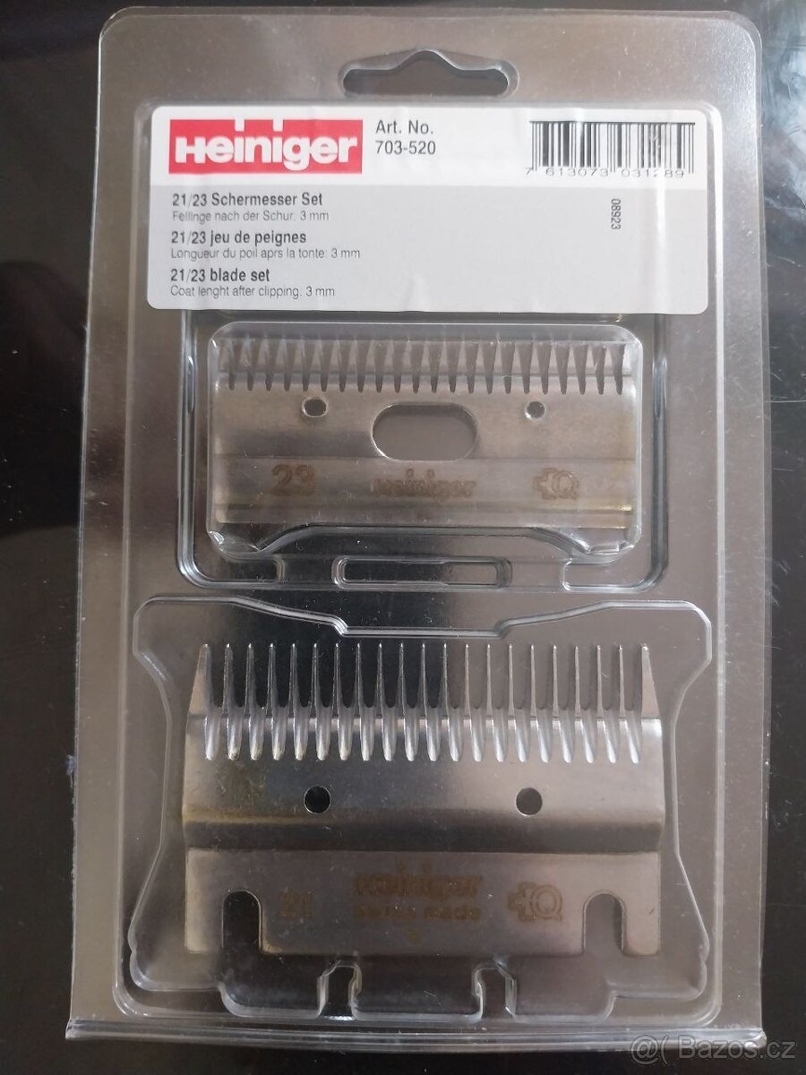 Sada nožů Heiniger Standard 21/23 pro stříhací strojky na koně Heiniger,Kerbl, Horner Zipper Horse Clipper. Vhodné na úpravu i znečištěné srsti skotu/koní. Cena za bal. Nová! Možnost zasílání na dobírku zásilkovná 115Kč.