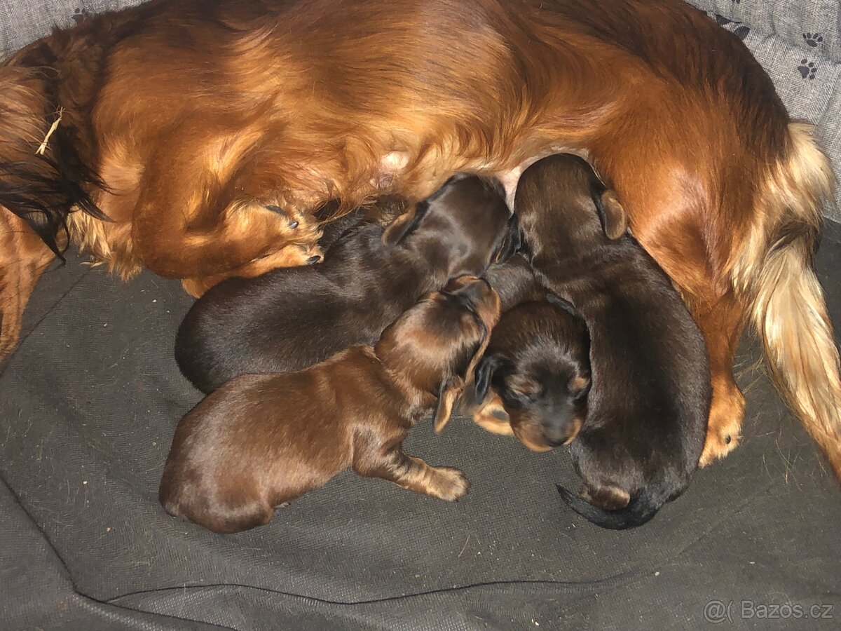 Nabízím štěňátka jezevčíka dlouhosrstého cena 10500kč rodiče k vidění odběr koncem března tel:733764446 prosím sms zavolám