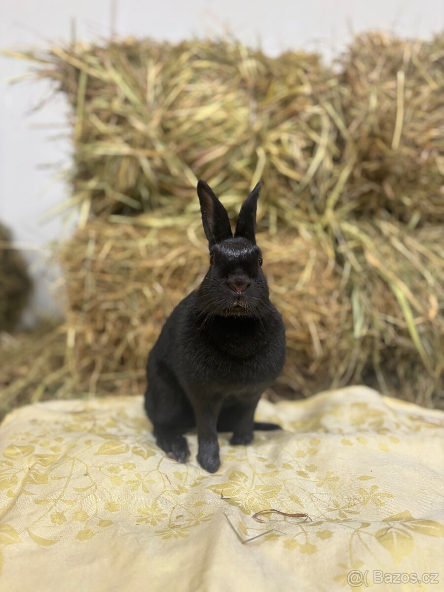 Zakrsly černý bílopesíkatý králík holka
