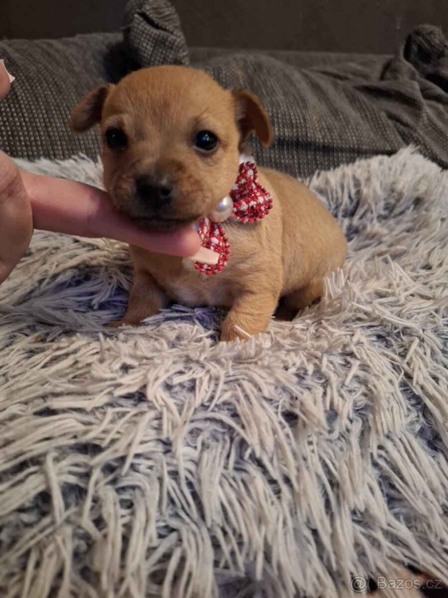 Čivava z krysařík - [17.2. 2026]Prodám štěně malého vzrůstu pražský krysařík křížení čivavou kluk má 10 týdnů očkování očkovací průkaz k němu mazel v dospělosti max dva kila bude vážit jen Volat z důvodu alergie si pejska nemůžeme nechat tel 734684602