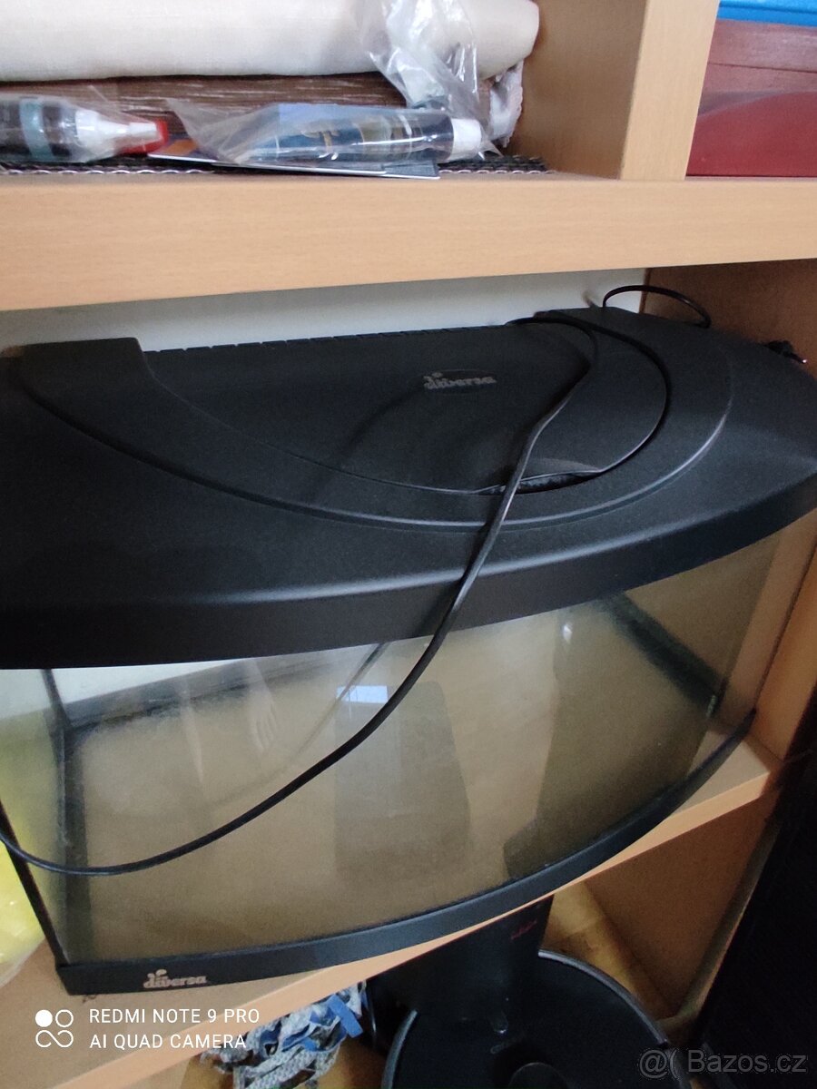 Akvárium 60x25x30 cm - [22.2. 2026]Prodám akvarijní set s oblou přední stranou. Včetně rostlin, písku, kamenů a kořenu, topítka, vzduchovače, osvětleni denní + noční, časovací zásuvky, čistící sady. V případě zájmu přidám i kovový rám pod akvarium. Nutný osobní odběr okolí Zlína.