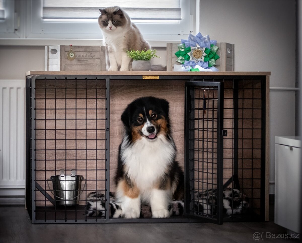 Klec pro psa do bytu – designová, 121×80×89,5, nosnost 80 kg - [22.2. 2026]Prodám designovou klec pro psa domácí výroby – ideální do bytu. Rozměr 121 × 80 × 89,5 cm.