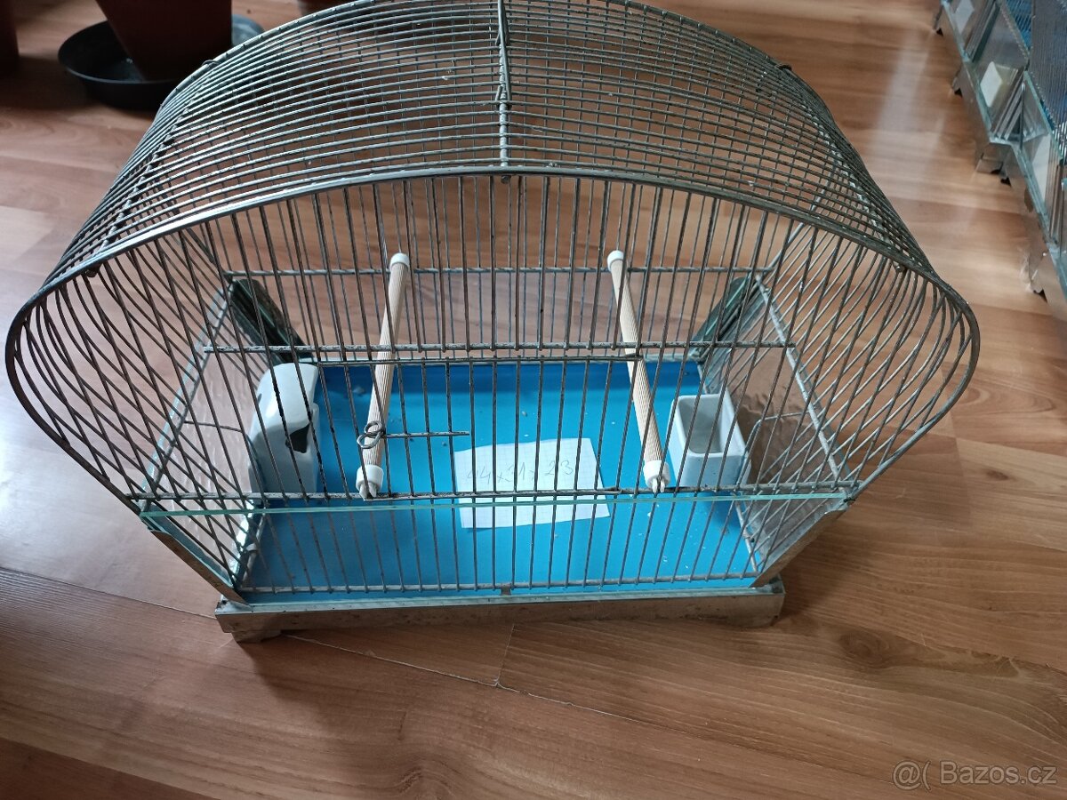 Retro klec s originál skly s Brusem a keramické krmitka