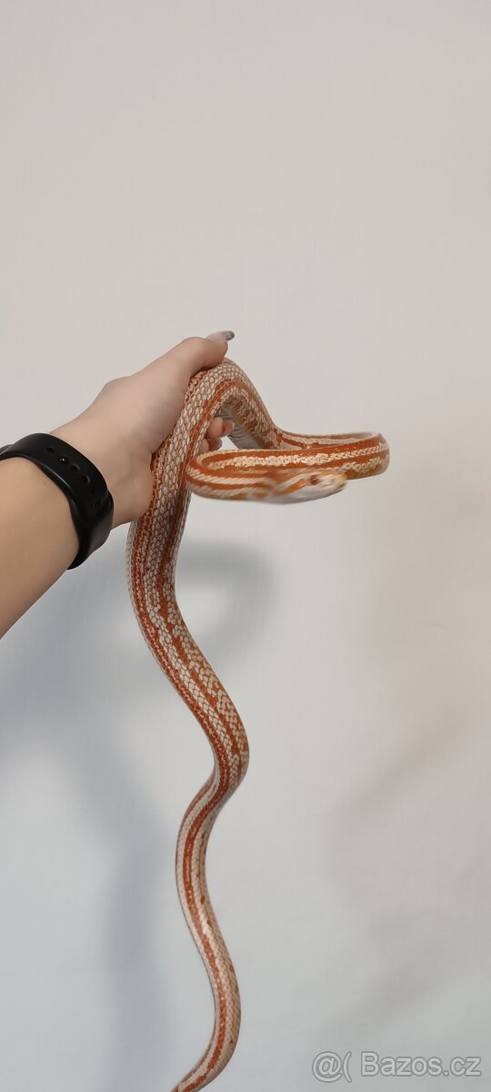 Užovka červená - [8.2. 2026]Nabizim krasne uzovky ve zbarveni amelano . Lonsky odchov . Uzovka je nenarocna na chov pro zacinajiciho teraristu. Mladata jsou rozkrmeni prijmaji zive i mrazene holatka . Vylihnty 10/2025