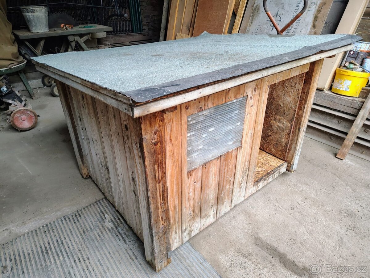 Bouda je zateplená, kombinace OSB a masivních fasádních palubek. Vydesinfikovaná Davem, 12 let stará, po 1 labradorce, celý roky stála v suchém kotci.