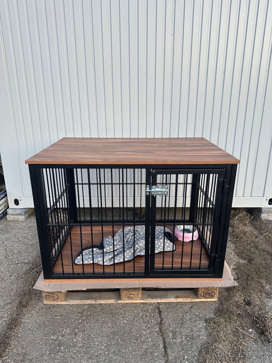 Prodám kvalitní ručně svařovanou psí klec, nejedná se o sériovou výrobu ani klec s tenkými dráty ze zverimexu. Klec je extrémně pevná, stabilní a bezpečná, je vhodná pro střední i větší plemena. Konstrukce je vyrobená z jeklu a kulatiny, takže vydrží opravdu hodně. Horní i spodní deska jsou z masivního dřeva OD TRUHLÁŘE.