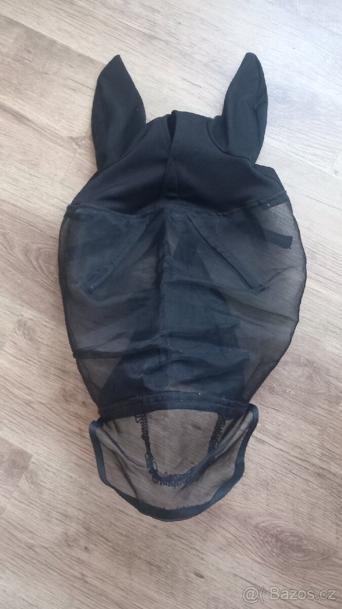 Maska proti hmyzu s krytkou přes nos Covalliero, velikost pony. Používaná minulý rok v létě. Má pouze vydrbané nějaké šňůrky u čumáku a drobnou trhlinku (viditelné na foto), jinak bez vady.