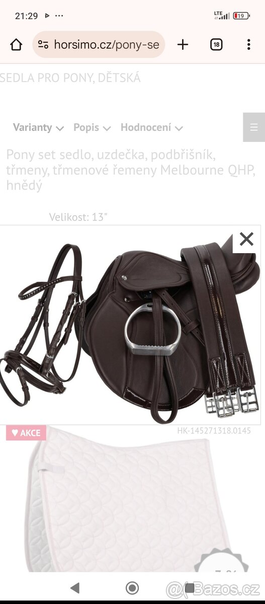 Pouze vyzkoušený set. V hnědé barvě uzdečka s kamínky na čelence.Špatně zvolená velikost.