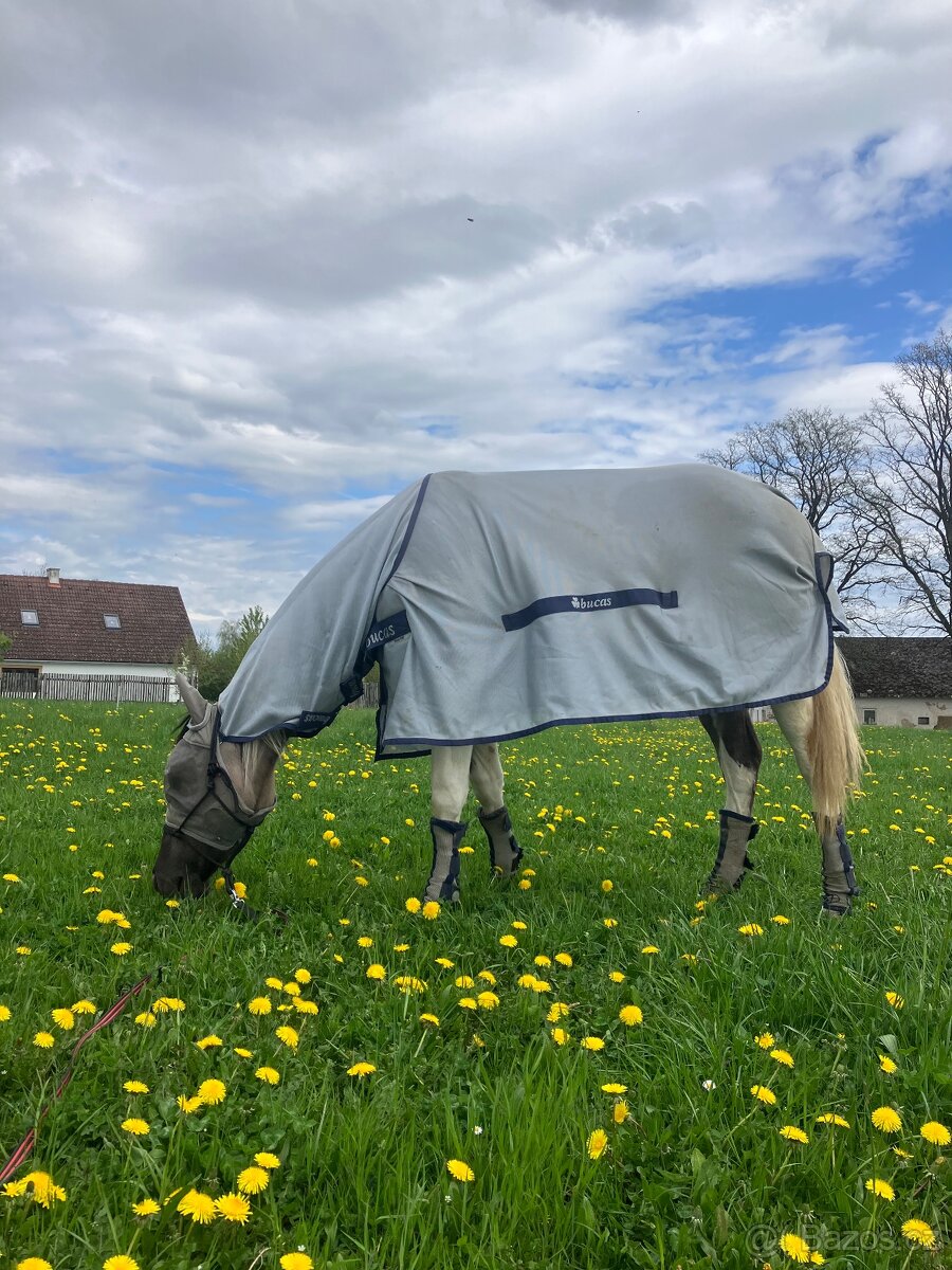 Síťová deka/ síťovka 155 cm - [3.2. 2026]Prodám tak týden používanou síťovou deku značky horze. Nenašla jsem žádnou dírku, kobyla se v tom vyválela někde v hovnech a nejde to vyprat. Jinak bez vad. Krk pouze vyzkoušeny, maska nepoužita