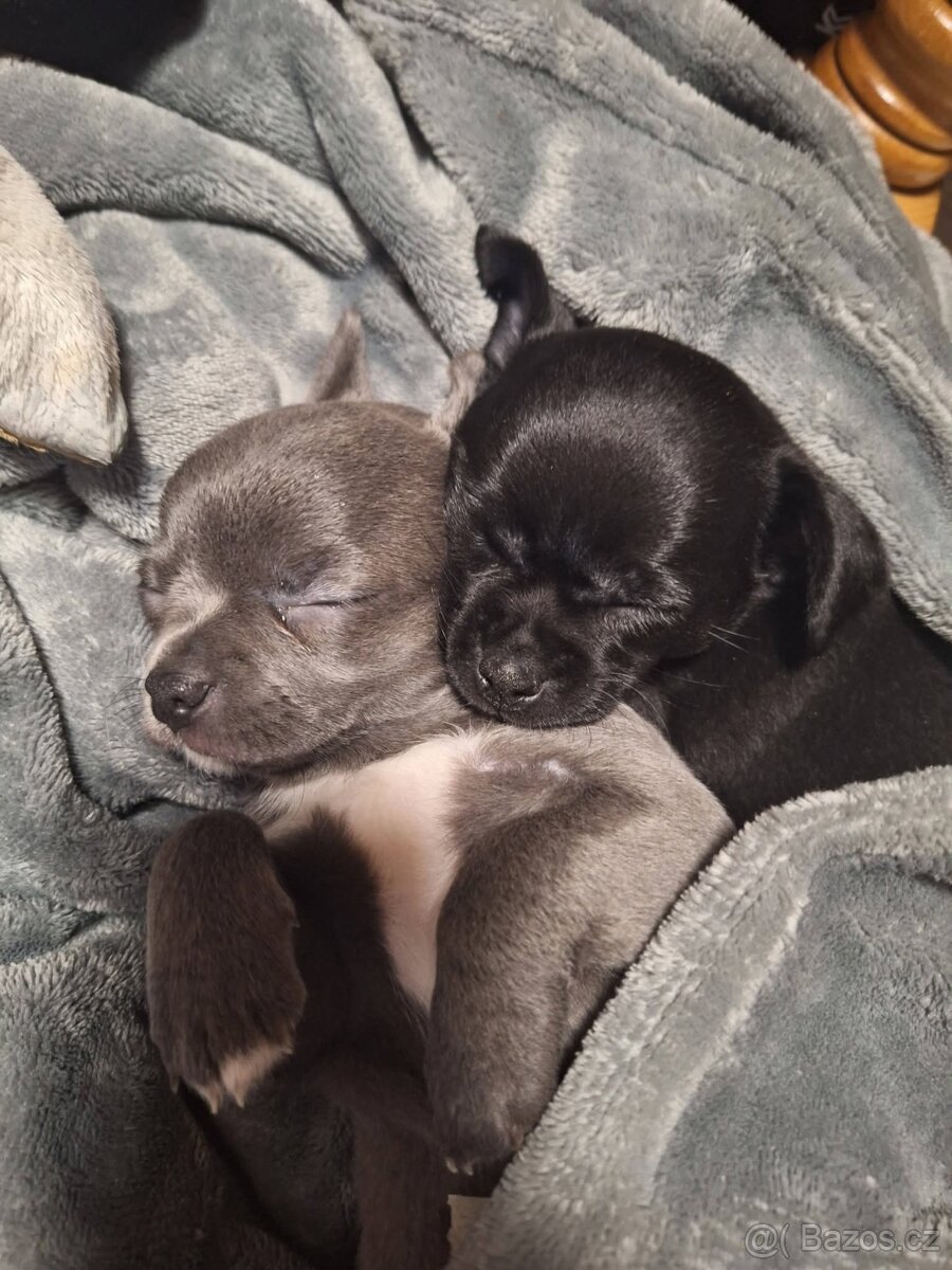 Čivava Mini pejsci - [24.2. 2026]Nabízím krásné,štěňátka čivavy jsou to pejsci, mají 8 týdnu v dospělosti budou vážit od 1.5kg - 2 kg, jsou naočkované a několikrát odčervené s čipem, rodiče u nás k vidění, tatínek s pp maminka bez ale čistokrevná, jsou vymazlené a hravé, naučené cho ...