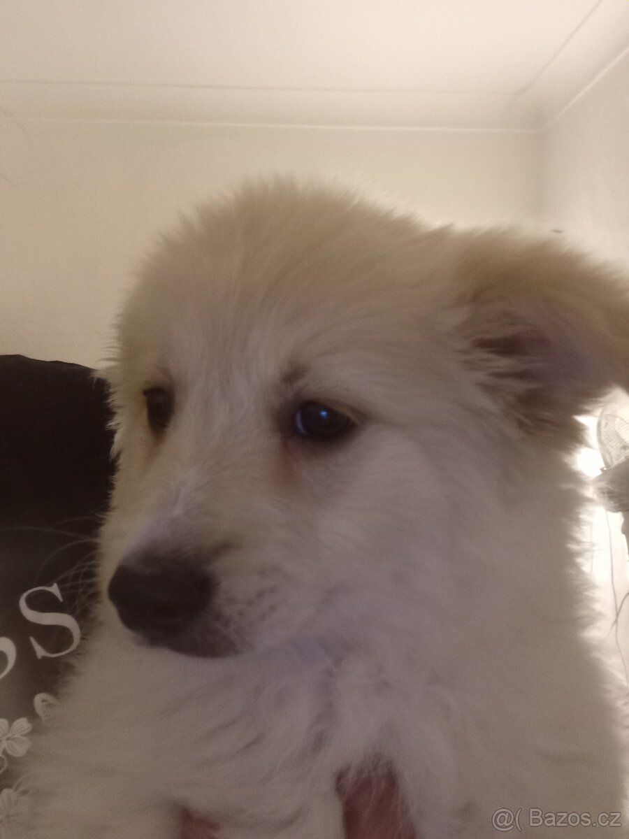 Prodám devititydenní štěňátko středního vzrůstu rasy Německého špice bílého.Je to chlapeček,mazlivý, hravý a ma rád děti i kočky.Pro více informací volejte