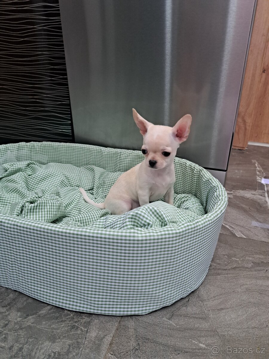 Nabízím krásné,štěňátka čivavy jsou to pejsci, mají 8 týdnu v dospělosti budou vážit od 1.5kg - 2 kg, jsou naočkované a několikrát odčervené s čipem, rodiče u nás k vidění, tatínek s pp maminka bez ale čistokrevná, jsou vymazlené a hravé, naučené chodit na plínu, papají granulky Royal canin puppy. Do nového domova dostanou granulky do začátku, očkovací průkaz s čipem, smlouvička je samozřejmostí.