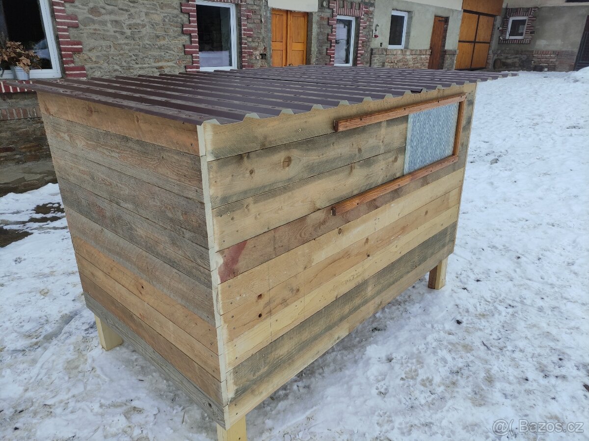 Prodám nový kurník pro slepice, kachny ze stavebních prken 22 mm délka 205 cm šířka 125 cm výška 150 cm. Střecha trapéz 18 mm. Okno šoupačka.