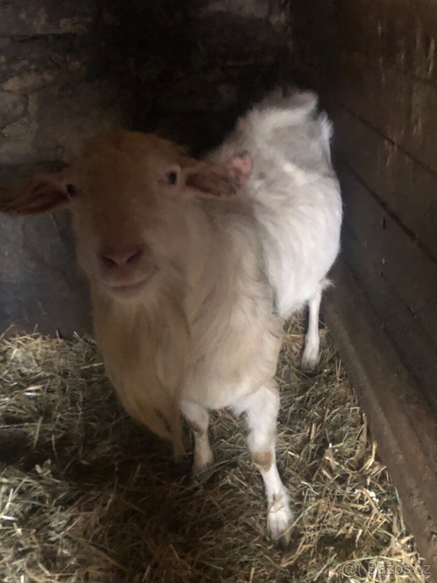 Daruji bílého bezrohého kozlíka, stáří 3 roky, je hodný, jen do dobrých rukou. U Náměště nad Oslavou.