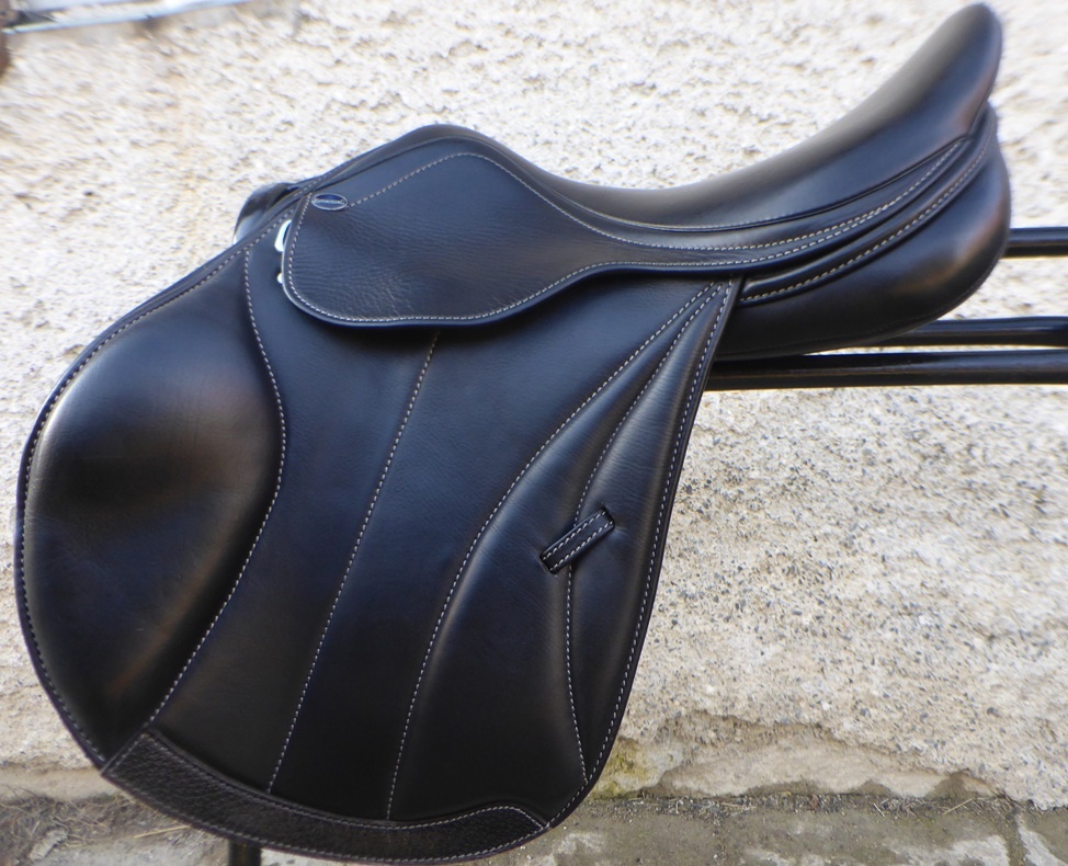 Zánovní skokové sedlo známé značky ze zdvojené teletiny, posedlí 16,5, komora široká, vlněný polštář https://www.euroriding.de/products/romulus-doubliert-springsattel?variant=46371387081036