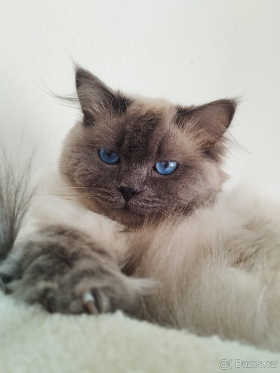 Ahoj, jsem 1,5 letý kocourek Jeremy plemene ragdoll, zbarvení blue colorpoint a nabízím krytí. Jsem klidný, mazlivý pohodář s hustou a bohatou srstí. Rád bych své geny předal ragdollý slečně o kterou by bylo v době krytí (5-7 dní) v našem domečku výborně postaráno. Požaduji však kočičku odčervenou, očkovanou a zdravou. Cena 2900Kč.