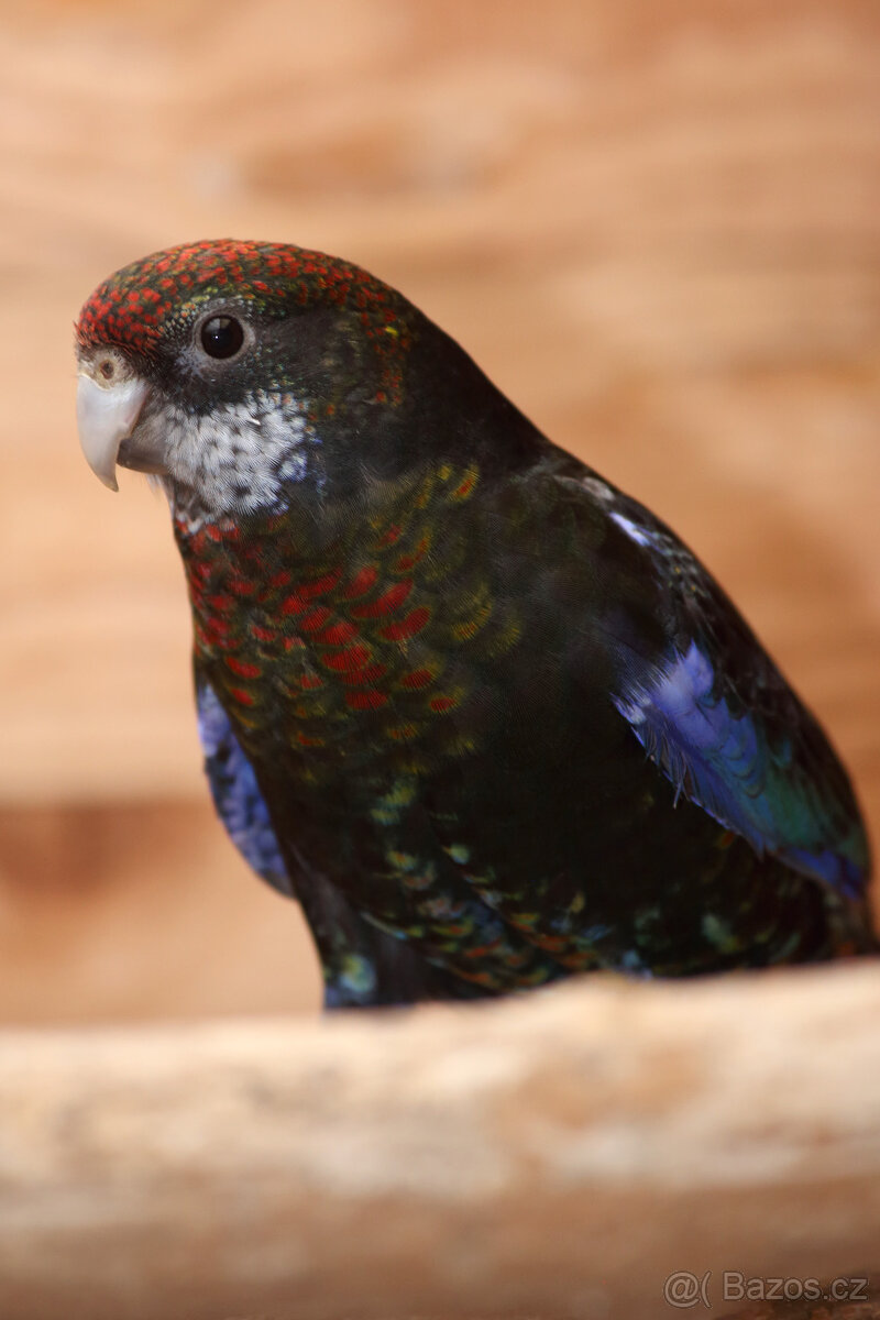 Prodám 2x samice Rosela pestrá černá opalinová. Kroužkované, rok 2025. Z venkovní voliery.