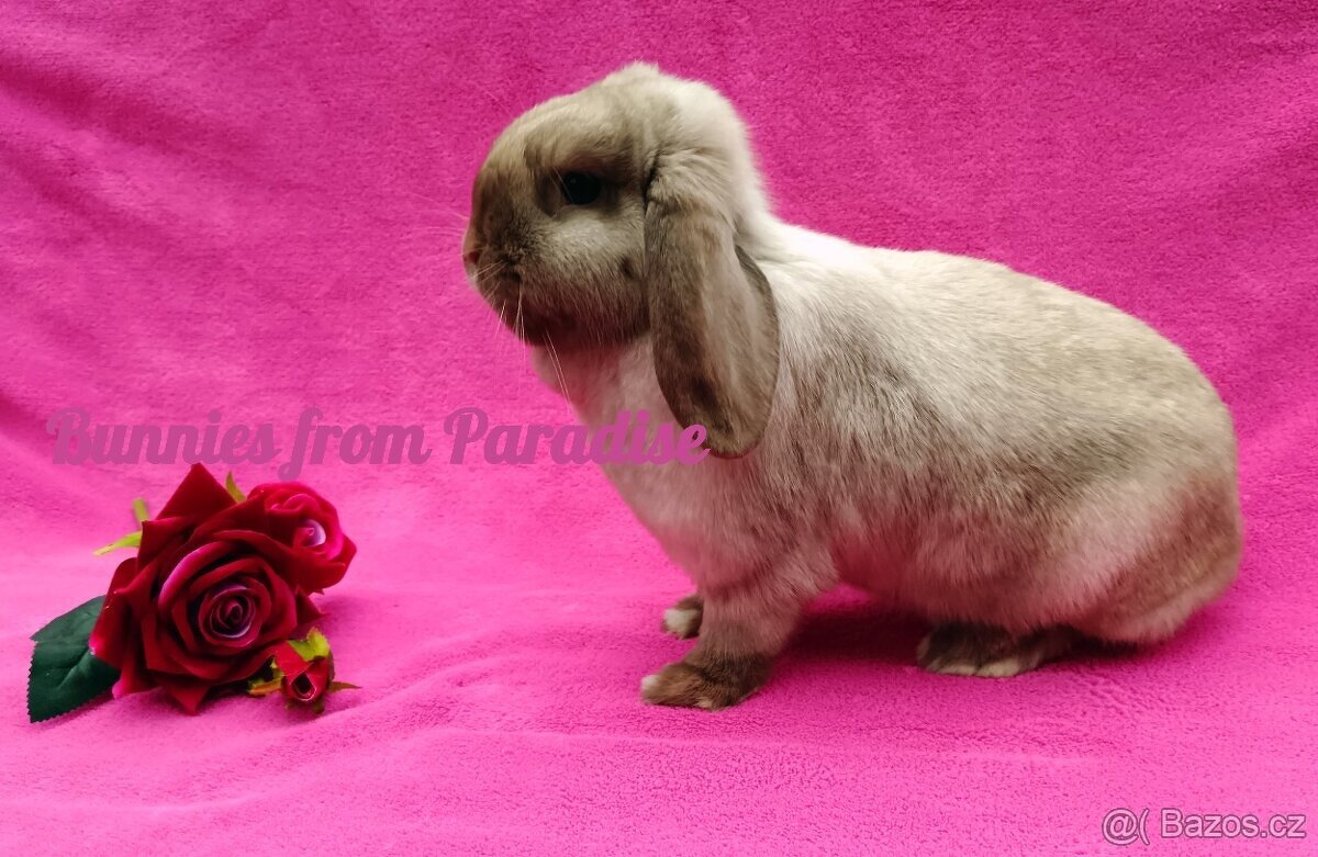 Překrásná holčička zakrslého beránka se siamskými znaky (+žlutooranžový nádech) hledá svůj nový milující domov. Je to velmi aktivní mladá králinda. Tatínek je plemene Miniature Lop ("minilop").