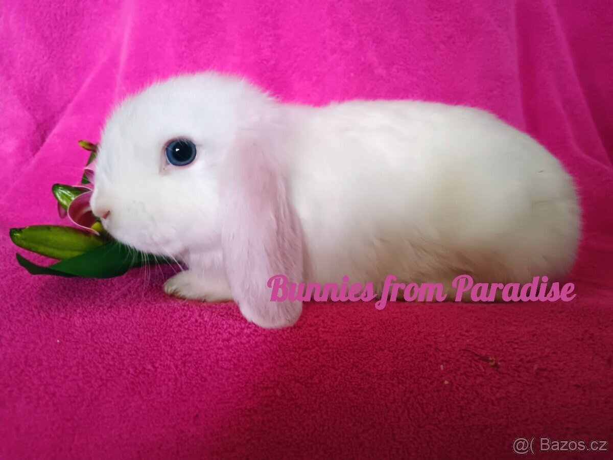 Překrásný modrooký klučík zakrslého beránka saténového v barvě bílé hledá svůj nový milující domov. Moc hodný, bude z něj velký mazlíček. Hodí se k osobě s delikátní povahou.Saténová srst je velmi hebká, jemná a na sluníčku třpytivá.