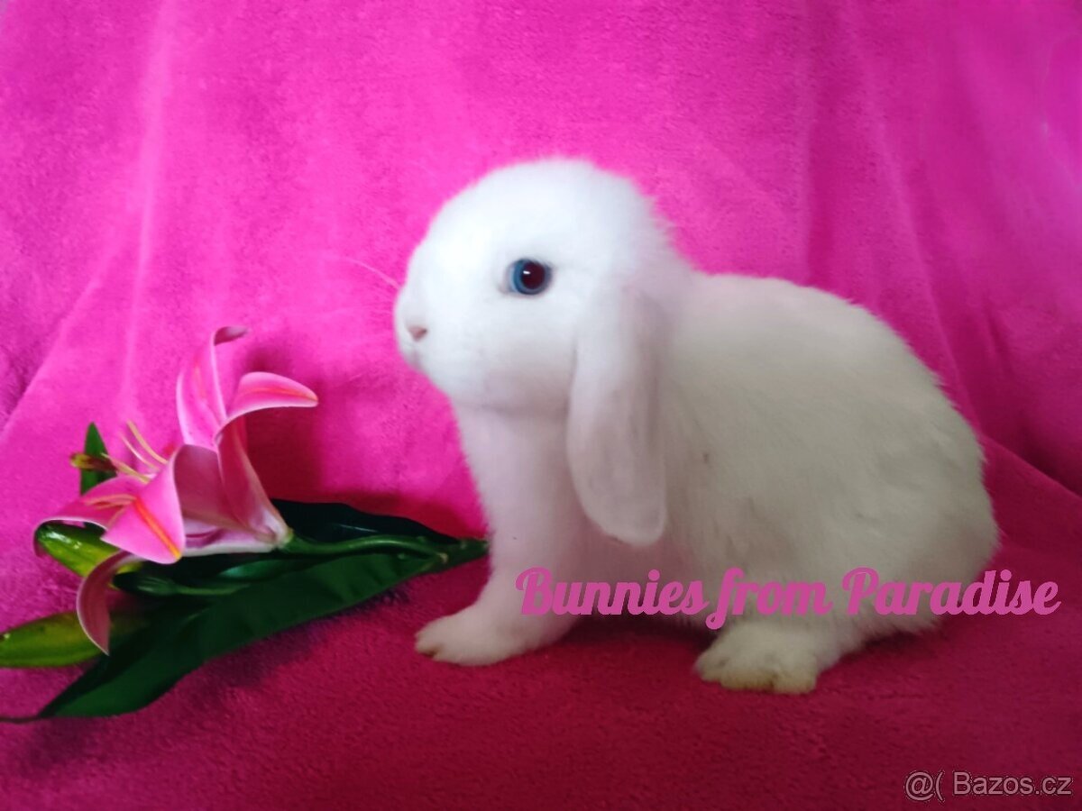 Překrásná modrooká holčička zakrslého beránka saténového v barvě bílé hledá svůj nový milující domov. Moc hodná princeznička. Hodí se k osobě s delikátní povahou.Saténová srst je velmi hebká, jemná a na sluníčku třpytivá.