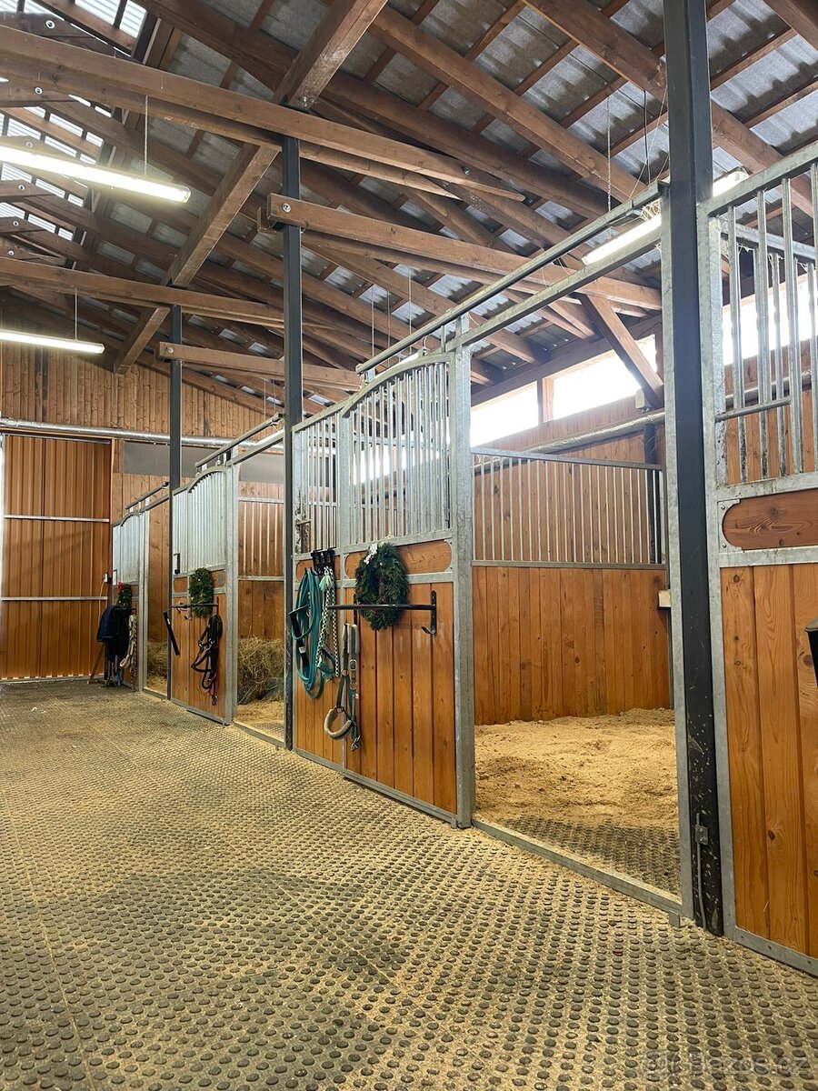 K dispozici sedlovna, kuchyňka a šatní skříňky. Napáječky vyhřívané v každém boxu a po celé ploše stáje jsou gumové rohože. Vyhřívané napaječky jsou rozmístěny i v každém z výběhů. Dětské hřiště k dispozici.