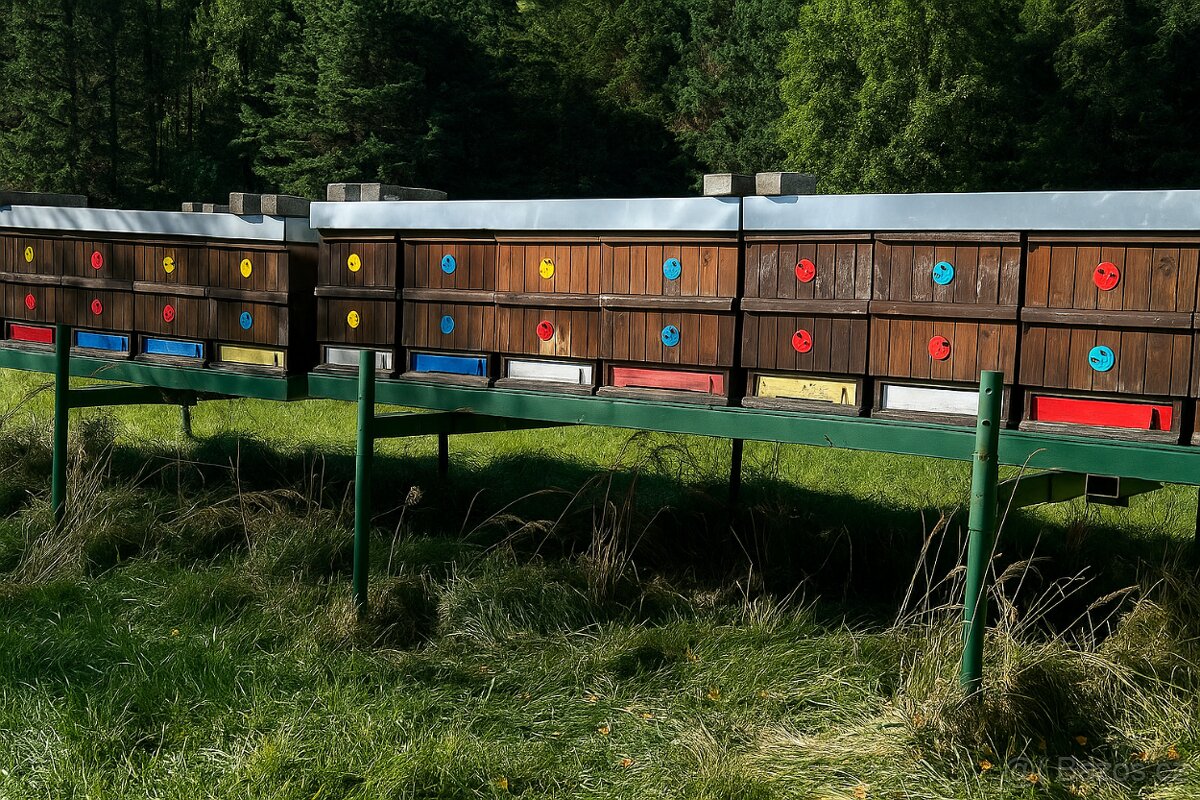 Včelstva na 10 rámcich, rámková míra 39 x 24 cm.