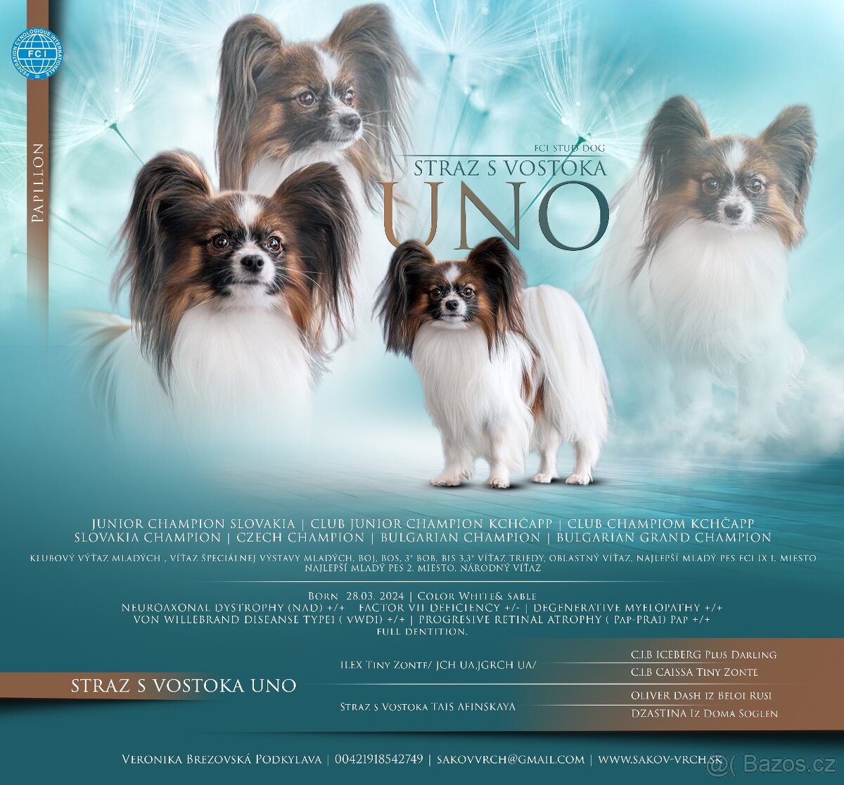 Zdravotnú dokumentáciu a presný rodokmeň na vyžiadanie.