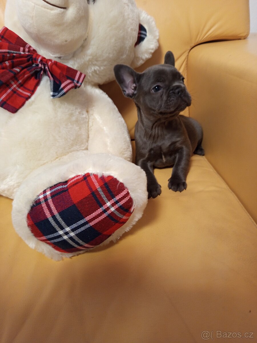 Francouzský buldoček modrý - TOP - [22.3. 2026]Prodám krásné štěňátko francouzského buldočka kluka v modré barvě ,věk 9 tydnů.Je očkovaný, čipovaný a pravidelně odčervovaný a připravený ihned k odběru .Fotky jsou aktuální.Oba rodiče štěňátka u nás uvidíte.Sebou do nového domova dostane granulky n ...