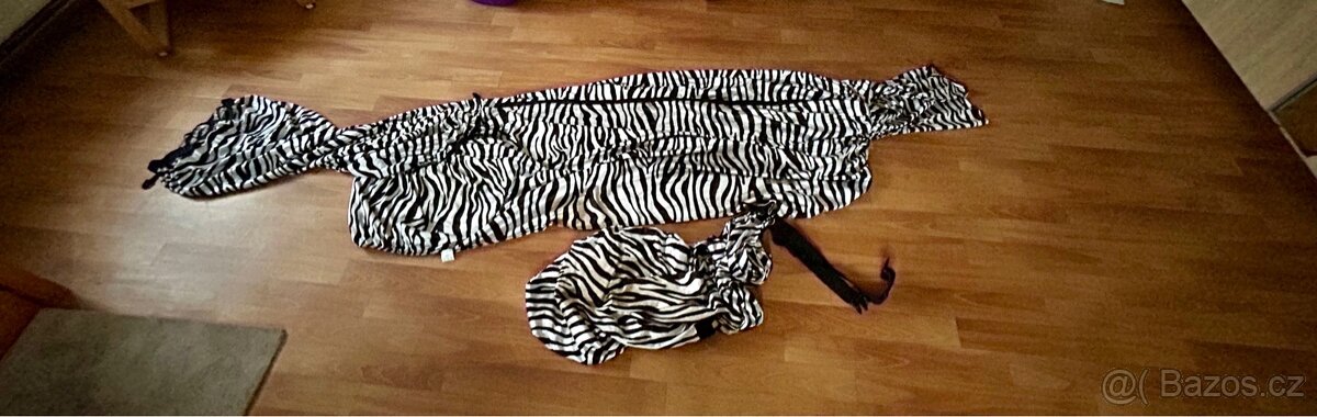 Síťovaná deka, zebra, vel. 155/160, připojení na břicho, navlékání na krk a na přední nohy.