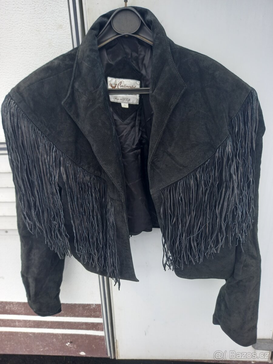 Prodám westernovou, černou bundu s třásněma, Continental, made in USA, vel. L. Cena + pošta
