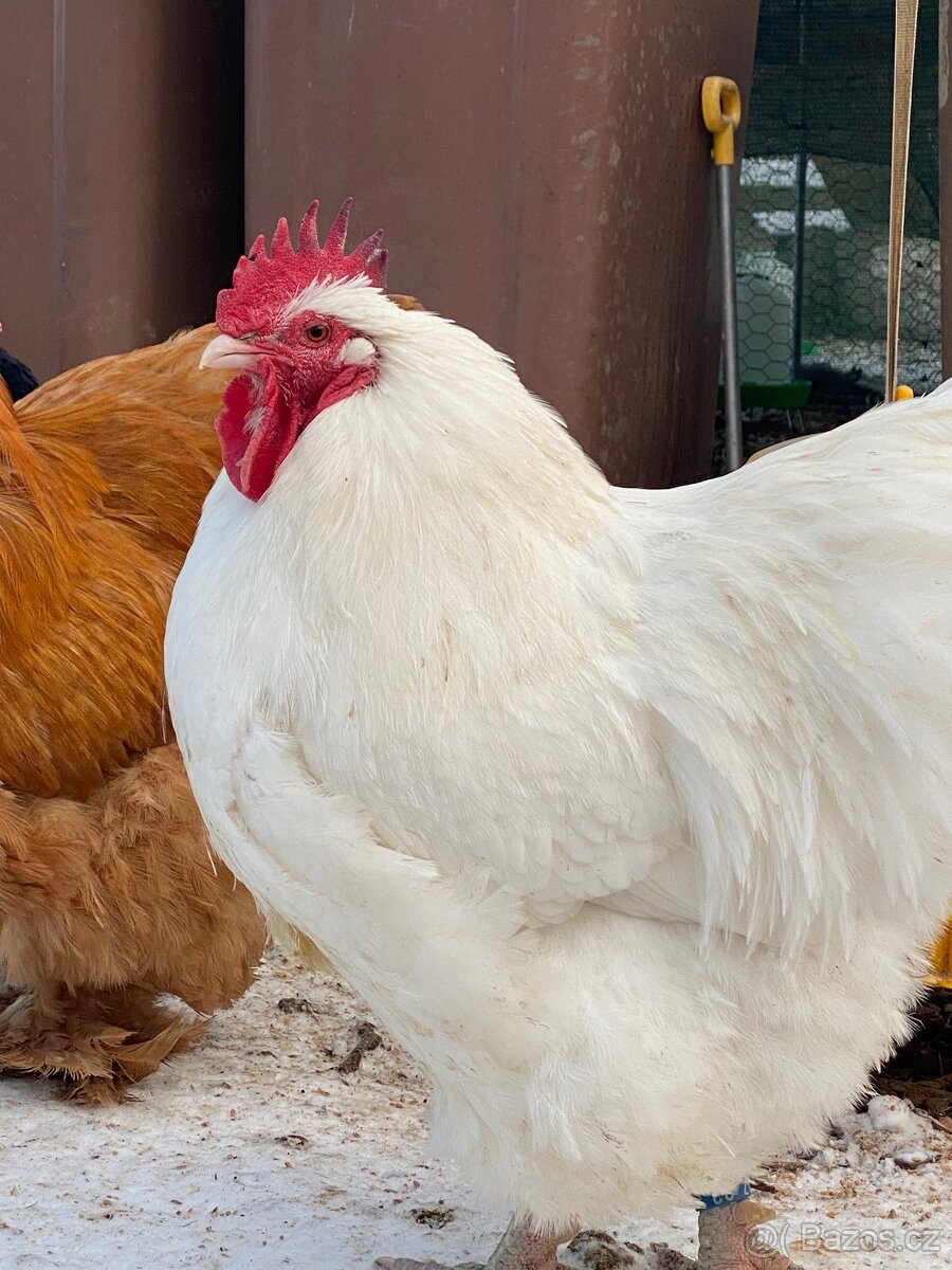 Nabízím kmen 1+2 Orpingtonky bílé velké, velká nepříbuzná zvířata. Původ CZ (náš odchov), SK, DE cena na telefon