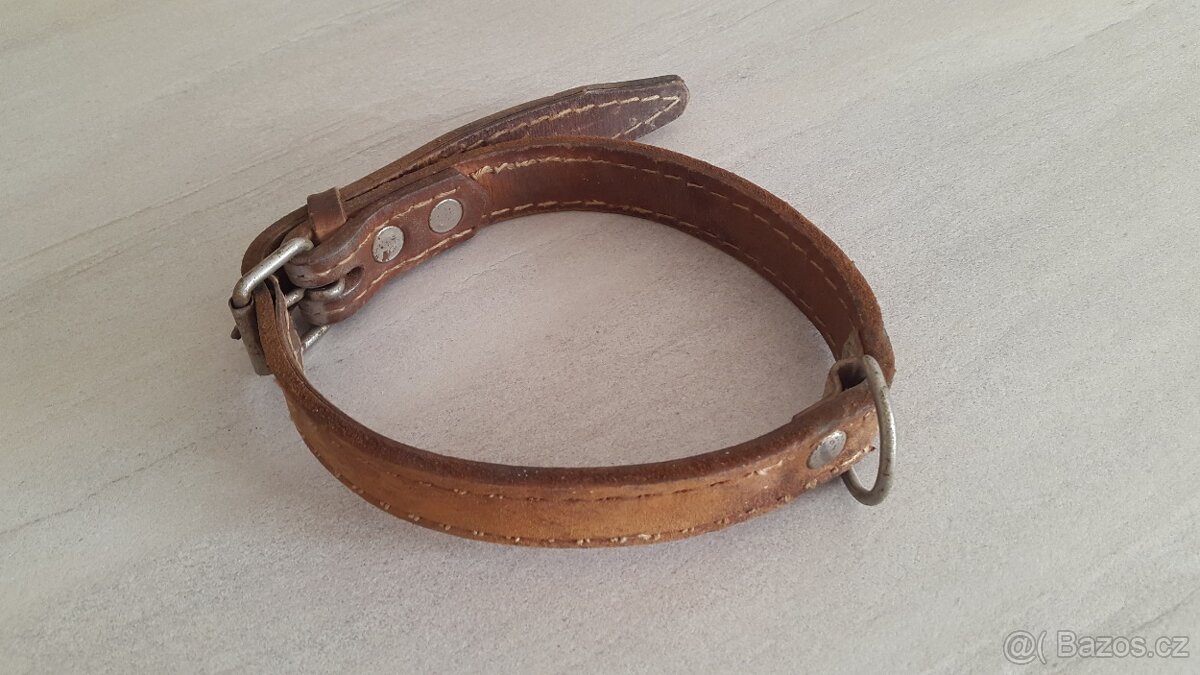 Kožený, šířka 2,5 cm, délka 58, délka k první dírce 41 cm. Použitý.