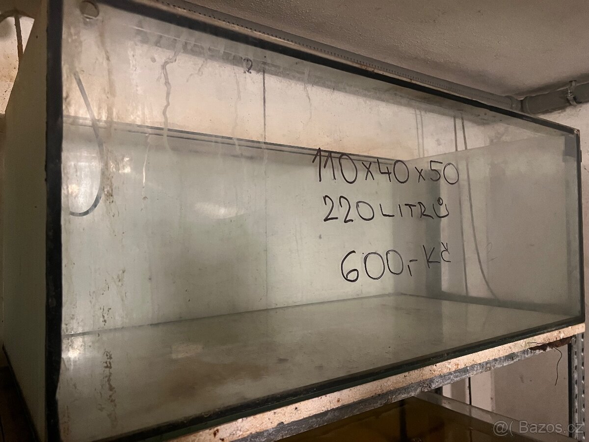 Dobrý den, prodám levně akvária o rozměrech dxvxš 100x40x50 a 110x40x50 a 100x54x58 cena 500, 600 a 700 Kč. Při větším odběru sleva. Mám ještě i jiné velikosti.