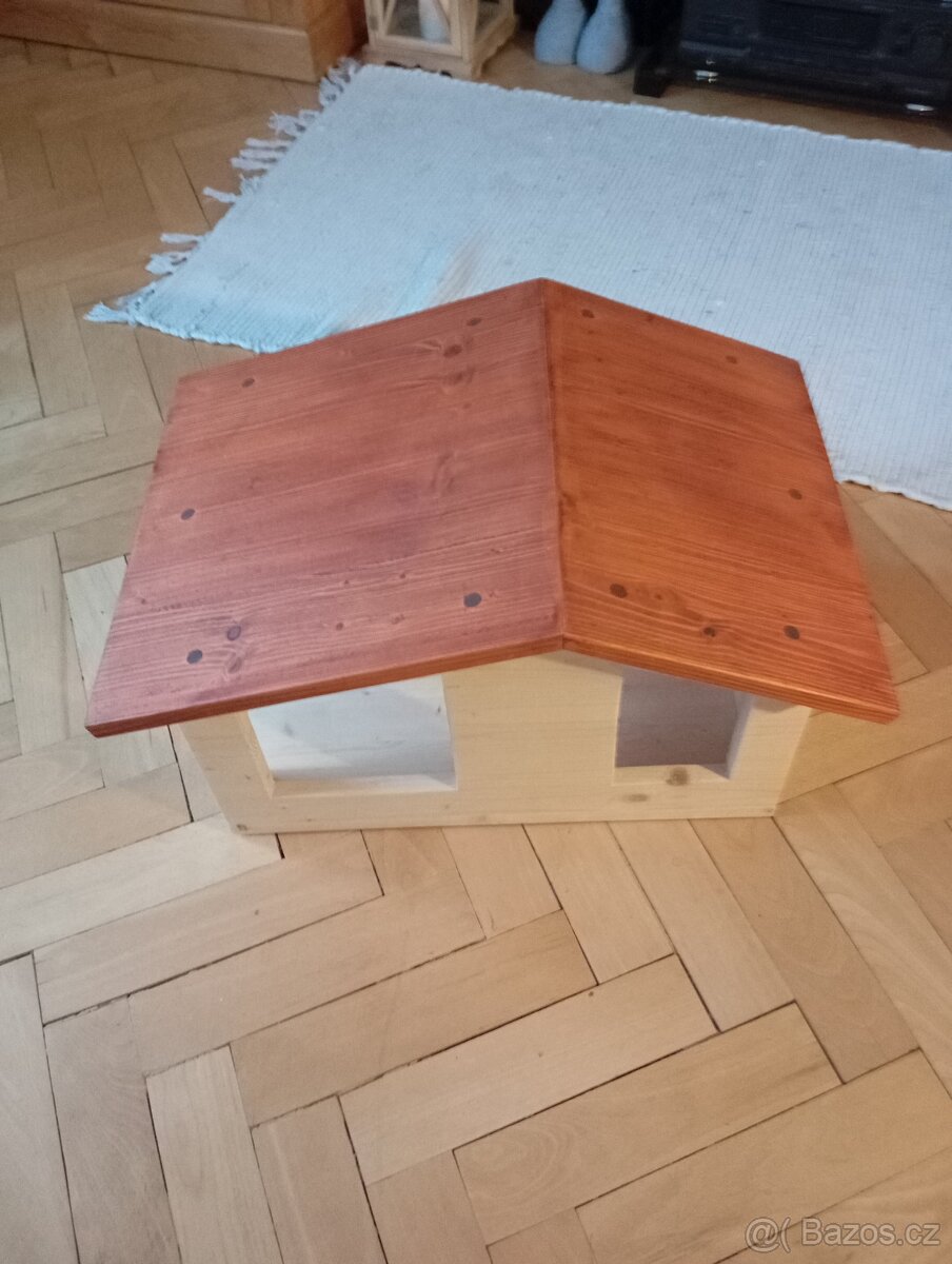 Nabízím tento jediný originál boudičky pro kočičky, králíčky a i malé pejsky, materiál masiv, rozměry délka 50 cm, výška 34 cm a šířka 35 cm určena spíše do interiéru.
