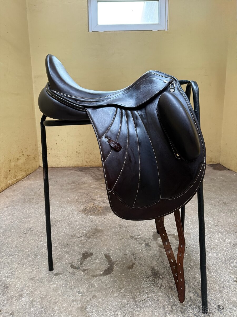 Predam sedlo Kentaur Rhode, komora 3, posedlie 17,5’, kostra GPR slim Venus na vlne. Sedlo je v tmavo hnedej farbe s kremovym presivanim a lakovanou zadnou razcochou. Bocnica skratena o 2,5cm. Stare dva roky.