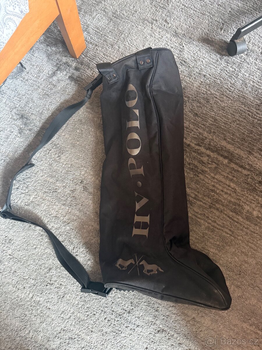 Prodám novou tašku na boty značky HV Polo. Taška má poutka do ruky i pás přes rameno. Vejdou se do ní i vyšší drezurní jezdecké boty.