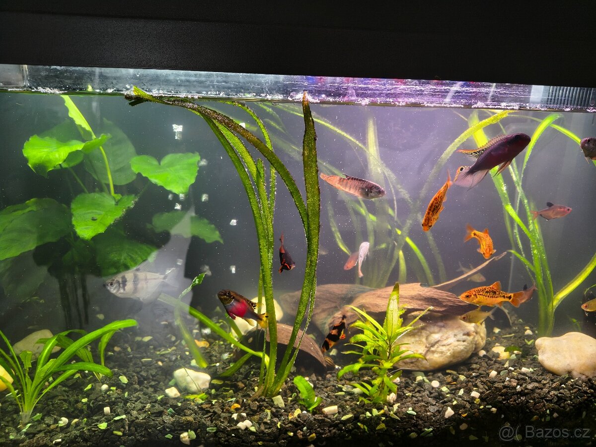 Prodám akvárium Juwel 100 litrů včetně příslušenství, rostlin rybiček, štěrku, automatické krmítko, led osvětlení, UV lampu, automatický spínač osvětlení atd.