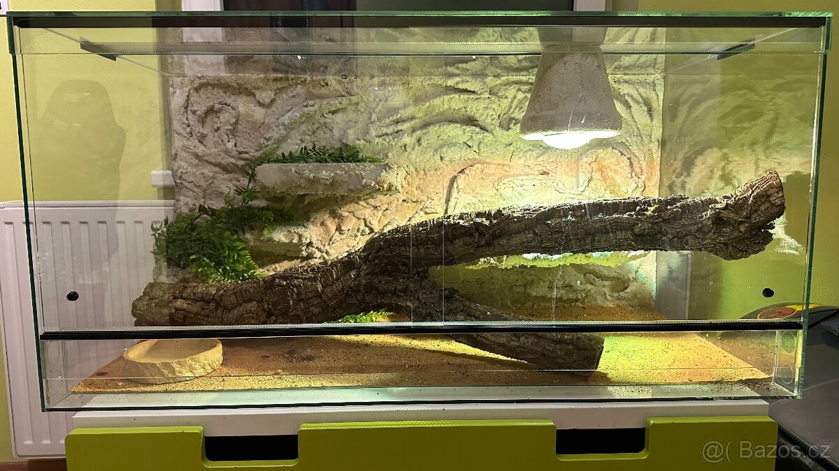 Prodám jen měsíc používané terárium. Včetně misek a lampy. Otevírají se obě přední poloviny skla. Rozměr 100 cm x 50 cm. PC 5500Kč nyní 4000Kč
